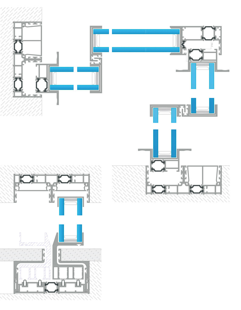 SYSTEM 150 MINIMAL offers a sliding, invisible, pocket, corner, fix and slide, pivot and vertical sliding (guillotine), in anodized, RAL colors or powder coating finishes. As an exterior sliding system comprises a balanced combination of an excellent thermal and acoustic behavior suited to the harshest climates. All sliding typologies can use jumbo size glazes up to 20m2 and can be combined with our innovative floor motorization system in order to achieve a perfectly silent and smooth operation for smart house projects. Safety glazing with multi-point locking system elevates burglar resistance to the highest European standards.